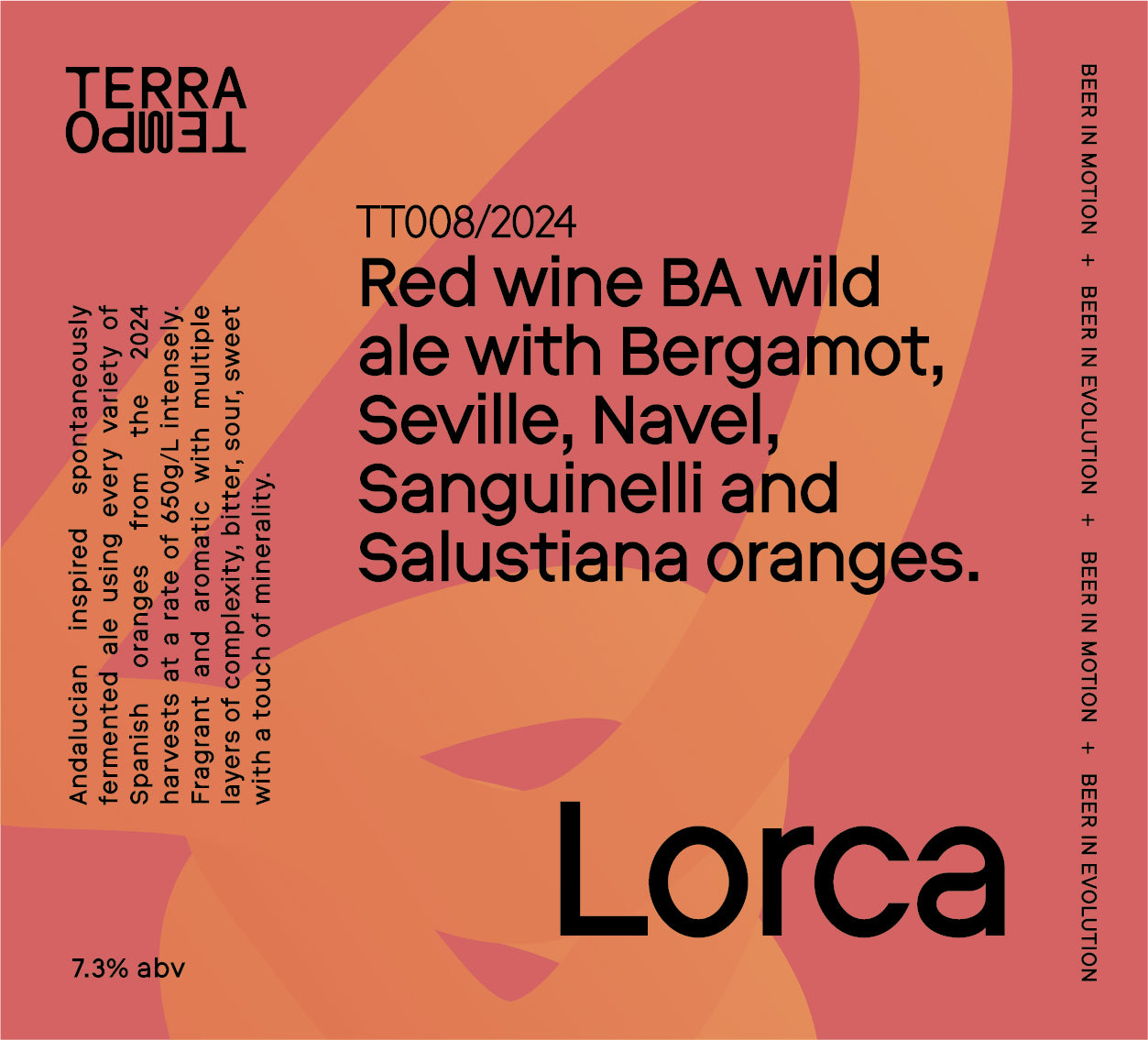 Andalucian inspired spontaneously fermented ale using every variety of Spanish oranges from the 2024 harvests at a rate of 650g/L intensely fragrant and aromatic with multiple layers of complexity, bitter, sour, sweet with a touch of minerality.