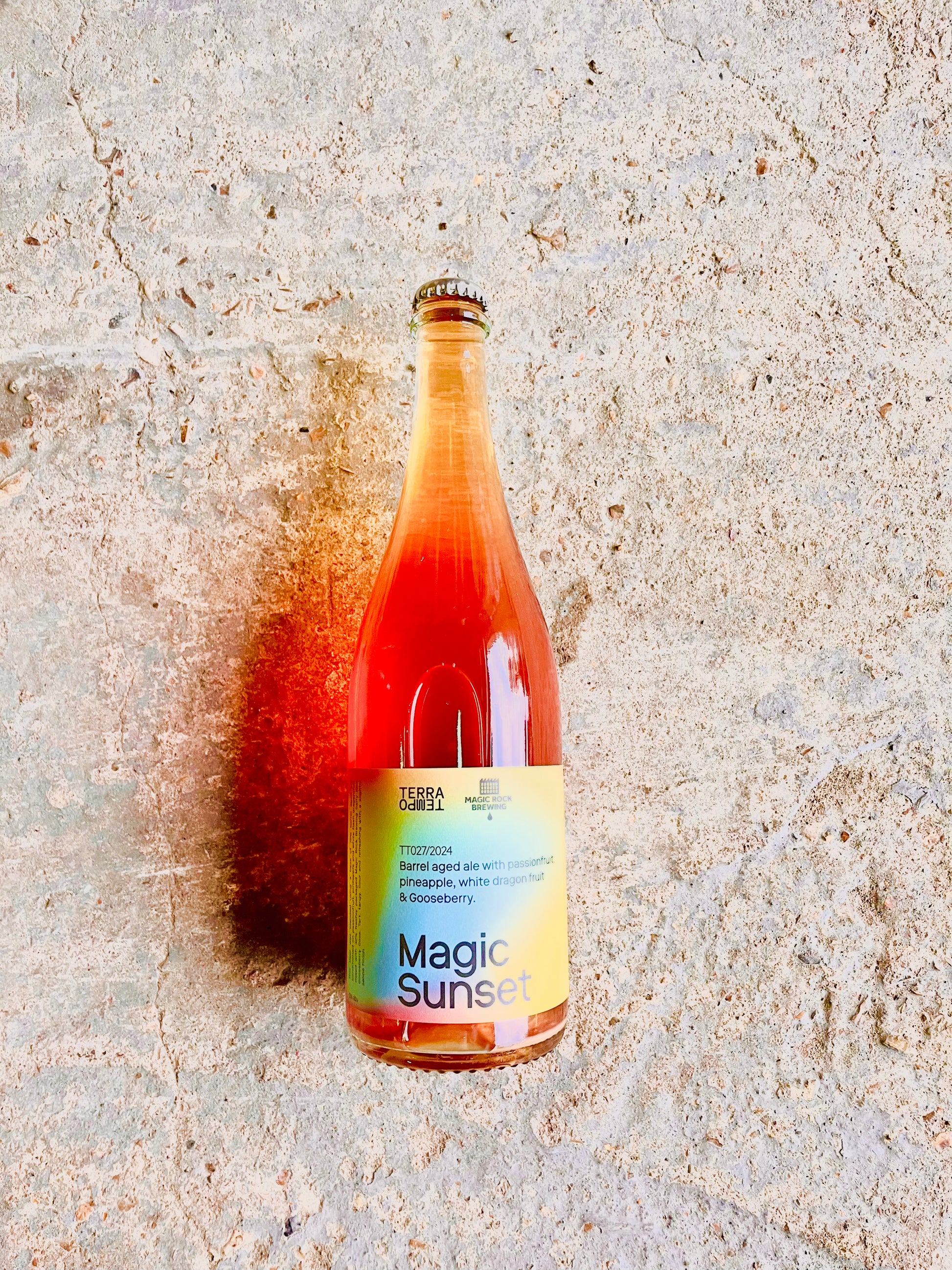 Magic Sunset - Barrel aged ale with Passionfruit, Pineapple, white Dragon fruit and Gooseberry. 5% 750ml